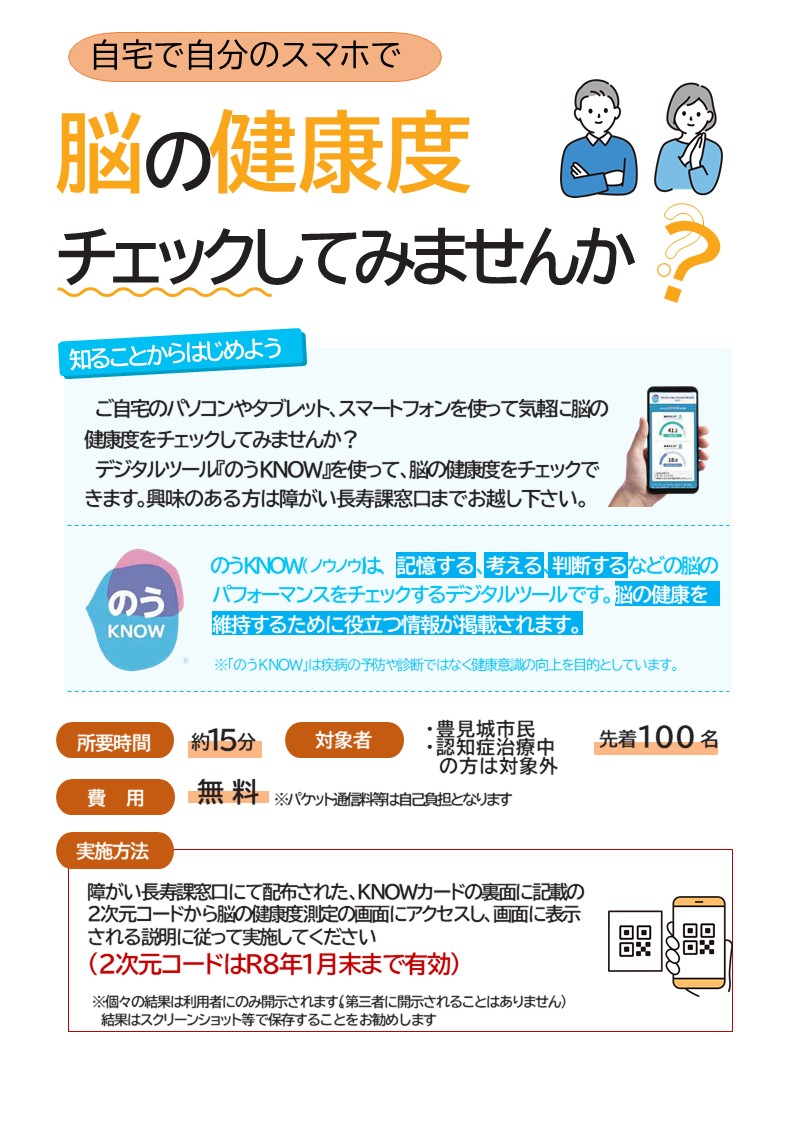 QRコードの付いたKNOWカードを先着100名に配布中。 (配付対象者:市内在住の65歳~74歳の方) 無くなり次第終了。