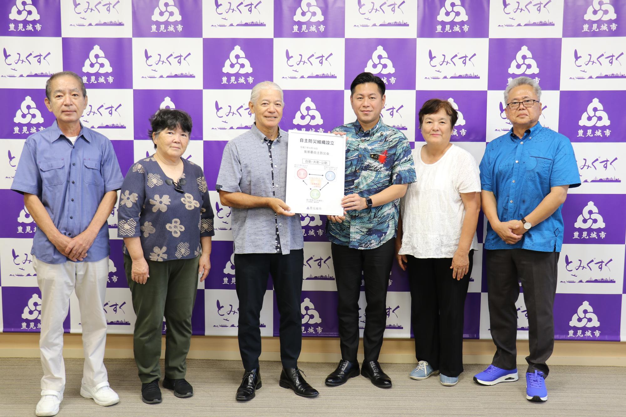 令和7年9月30日、我那覇自治会(会長 比嘉守)が自主防災組織の設立を徳元市長に報告しました。