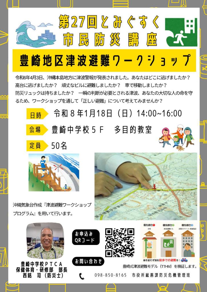今回の防災講座の表題は、「豊崎地区津波避難ワークショップ」です。