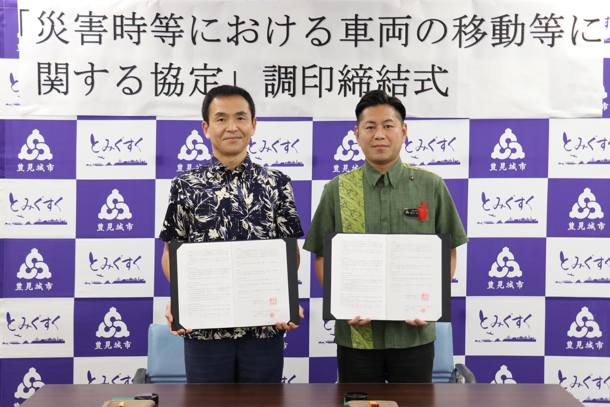 本協定は、豊見城市において災害が発生した場合又は発生するおそれがある場合に円滑な応急対策を行うため、車両の移動等の要請を行う場合の手続き等に関する事項を定め、もって災害時等における被害拡大防止及び市内道路、避難所等の機能保全並びに災害からの円滑な復旧に資することを目的としています。