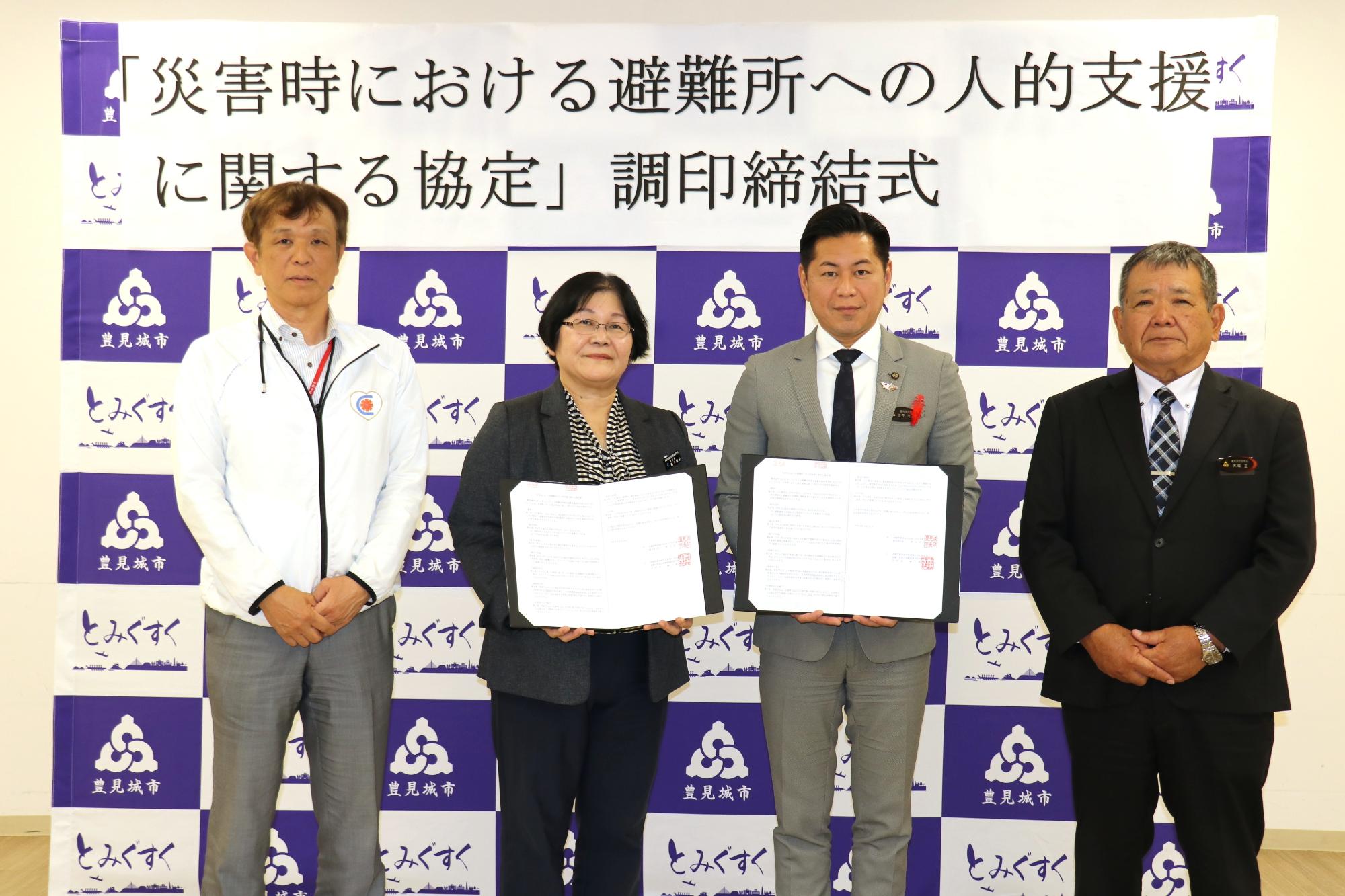 本協定は、豊見城市において災害が発生した場合又は発生するおそれがある場合に、避難所において支援を必要とする要配慮者(高齢者、障がい者、妊婦、乳幼児など)に対し、専門的な知識を有する人材を確保し、適切な人的支援を行うことを目的としています。