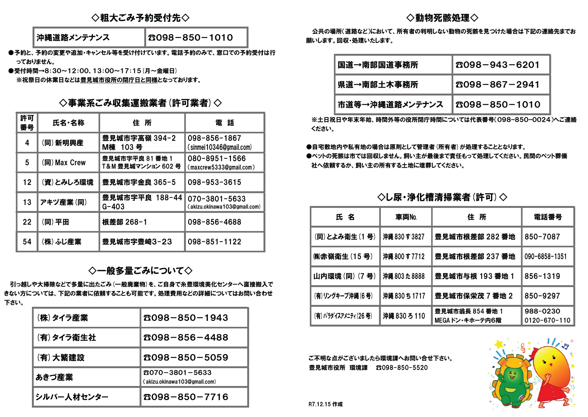 【糸豊環境美化センター】 糸満市字束里74-1 電話番号:098-997-3078