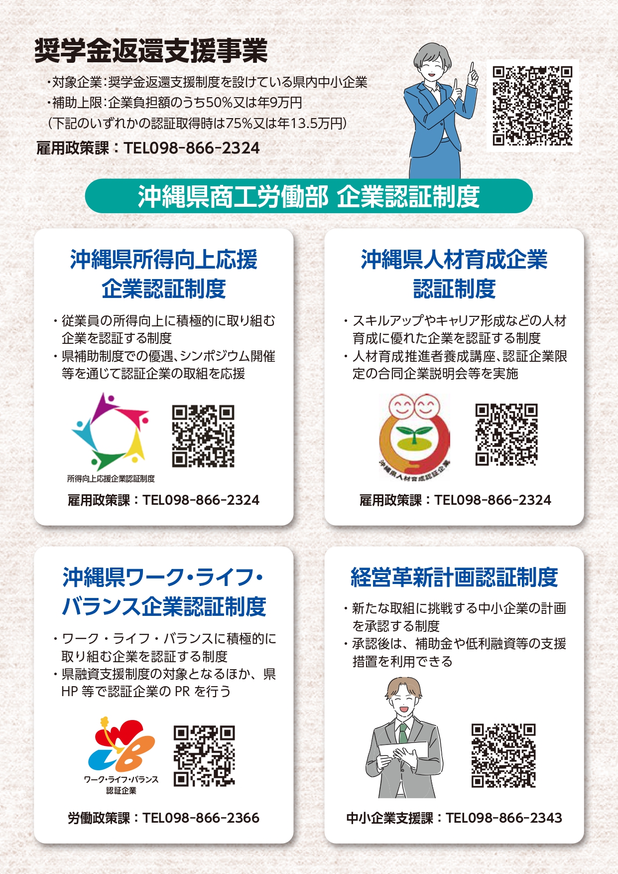 沖縄県では、県内中小企業の稼ぐ力の向上や人材確保・定着を支援するため、4つの企業認証制度を実施しております。
