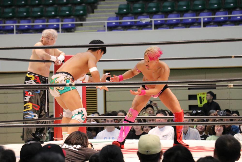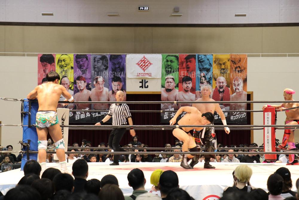 イベント当日は、「九州プロレス」の選手と「琉球ドラゴンプロレス」の選手がコラボしたタッグマッチが行われ、会場は大いに盛り上がりました!!