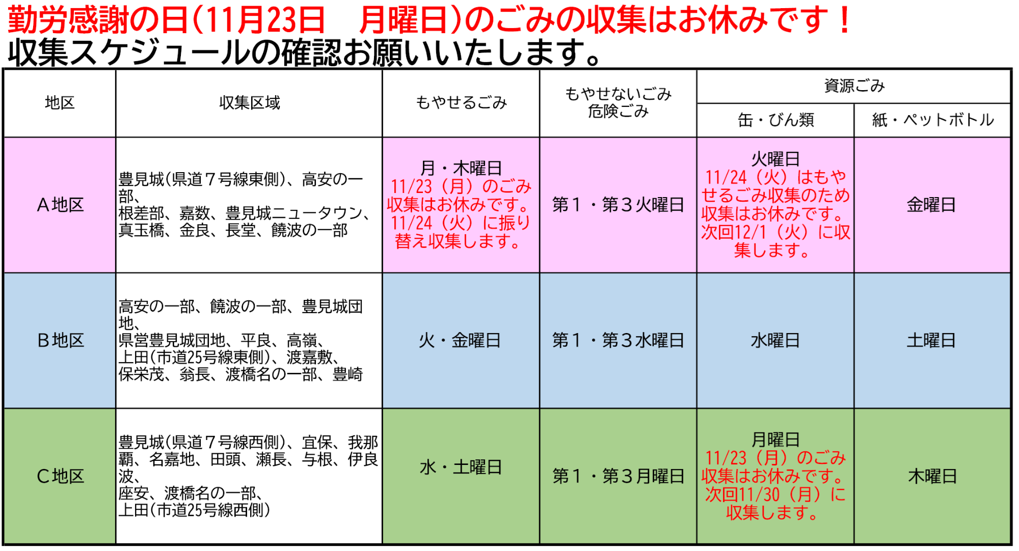勤労感謝の日(令和8年11月23日 月曜日)のごみ収集について