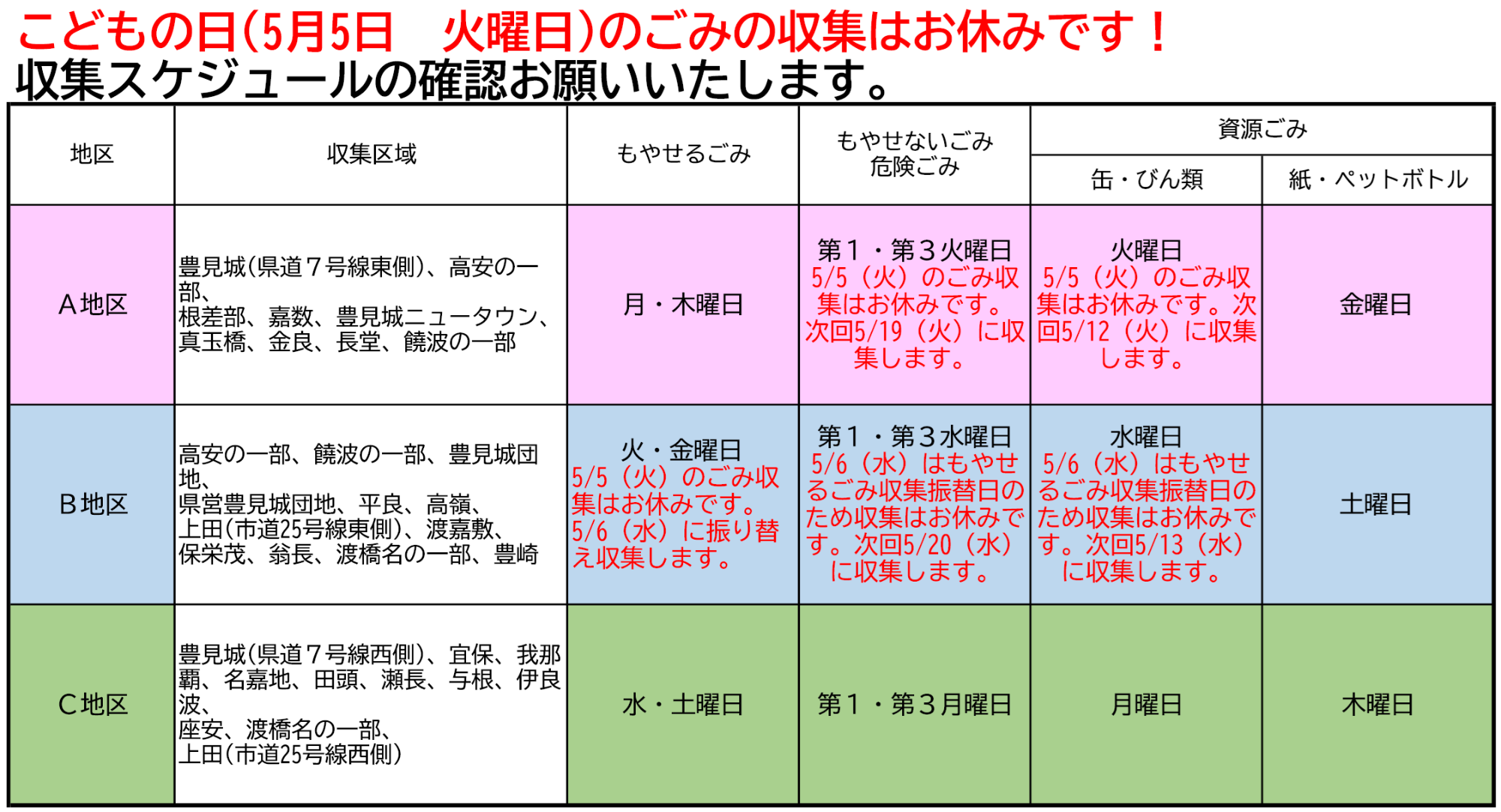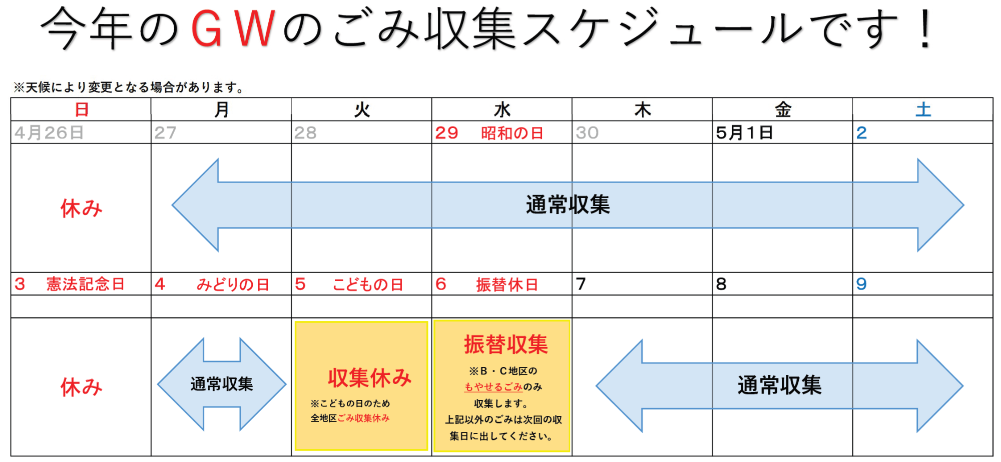 こどもの日(令和8年5月5日 火曜日および振替休日)のごみ収集について