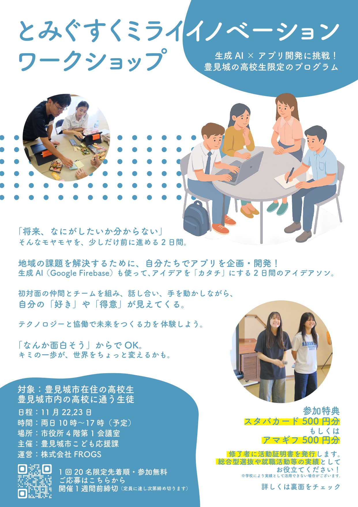 11月22日・23日開催【受講生募集】とみぐすくミライ イノベーションワークショップ( 高校生向け人財育成事業 )